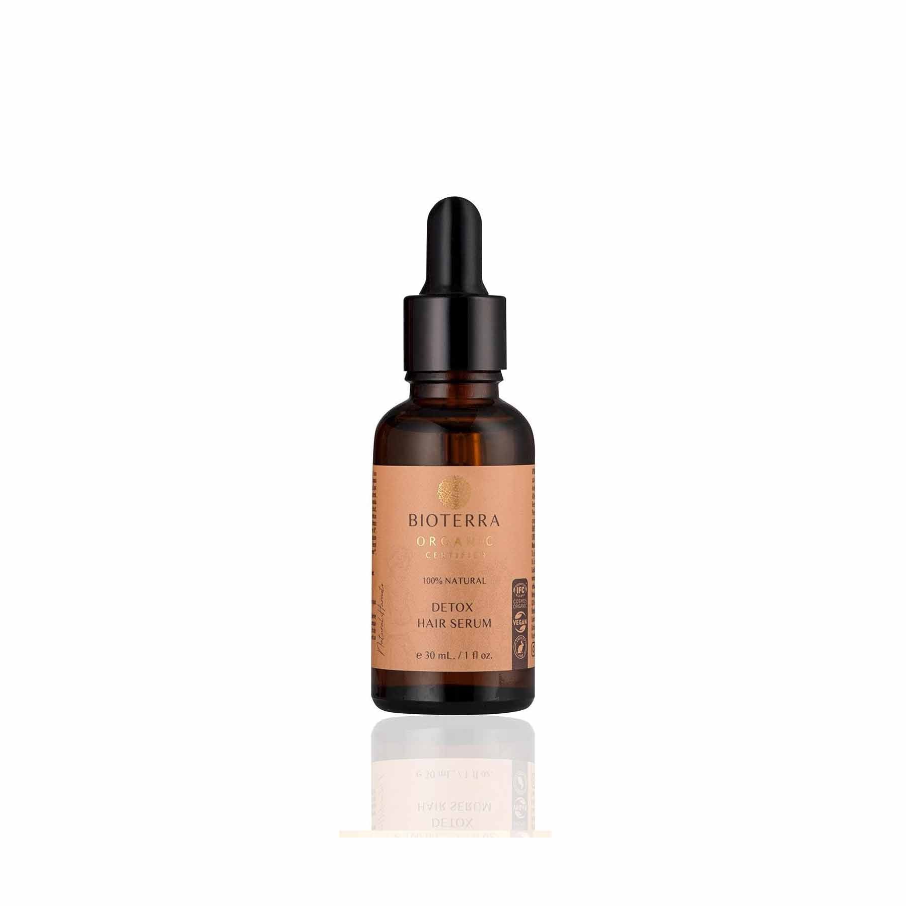 Bioterra Organic Detox Hair Serum is a revitalizing blend of organic plant extracts formulated to nourish the scalp and support healthy hair growth. Enriched with garlic oil, argan oil, nettle, ginseng, tamanu oil, jojoba oil, black currant oil, and coconut oil, it strengthens hair from root to tip and helps prevent hair loss. Essential oils of clary sage, cypress, tea tree, lavender, cedarwood, and ylang-ylang boost circulation, accelerate cell renewal, and enhance vitality. For best results, use with Bioterra Organic Detox Shampoo.
