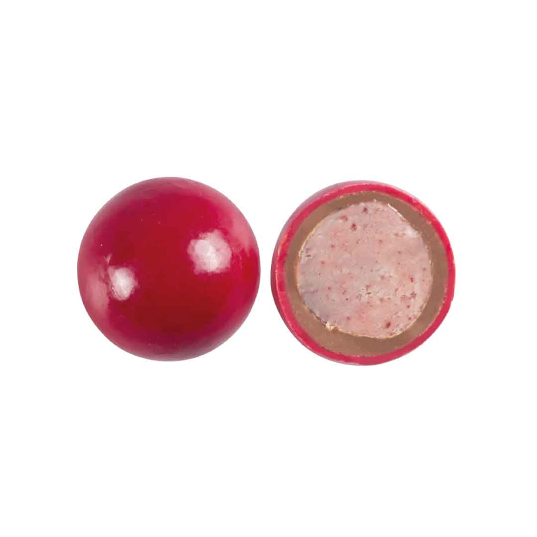 These handcrafted chocolate dragees feature a delicate, crispy shell filled with a vibrant sour cherry center.