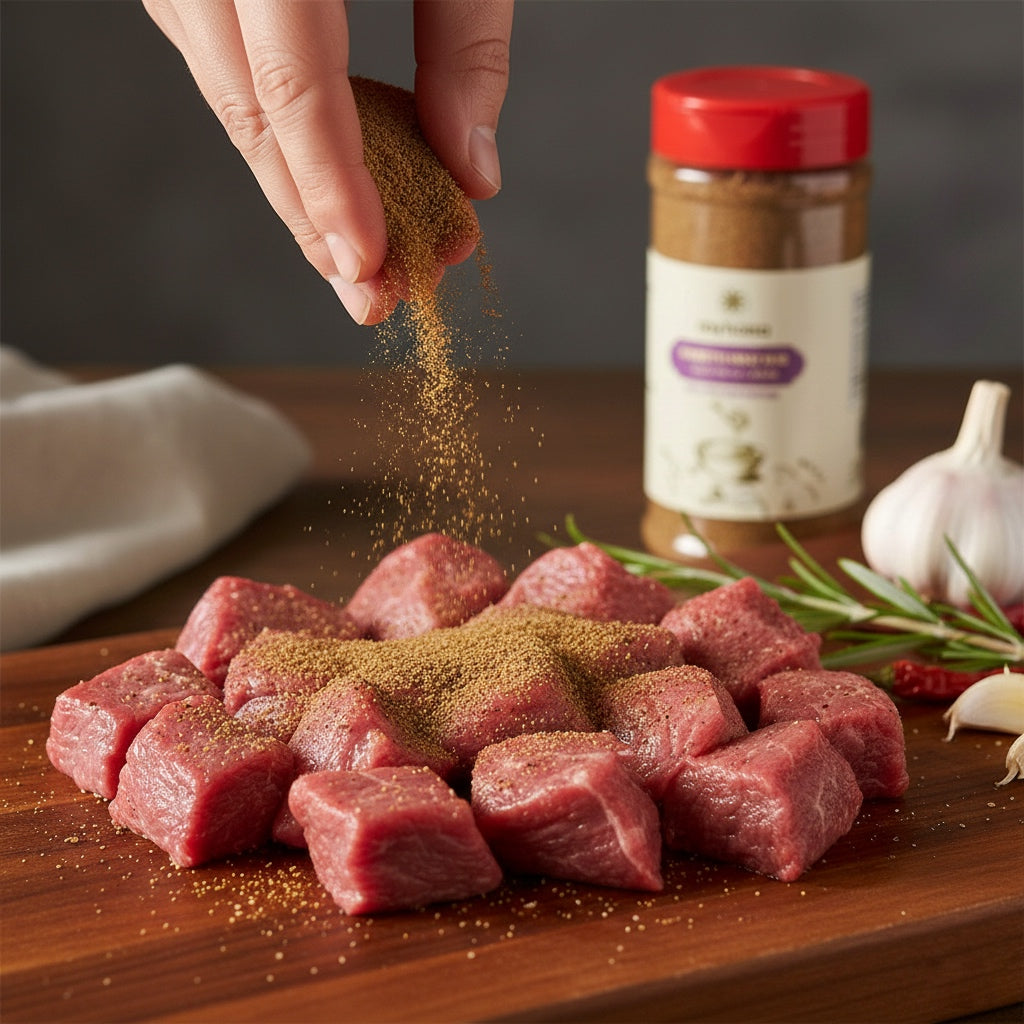 Rayhana Haneeth Meat Rub is a bold, aromatic blend designed for the slow-roasted Yemeni dish known as haneeth. Made with a mix of pre- and post-roasted spices including cumin, coriander, black pepper, garlic, cloves, and bay leaf, this rub infuses lamb or beef with deep flavor and a tender, spiced crust. Perfect for oven roasting or traditional underground cooking methods.